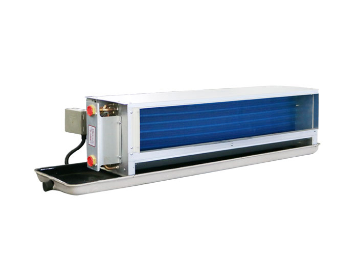 臥式明裝風機盤管機組主要由風機、換熱器(盤管)、殼體、托盤和控制器構成。